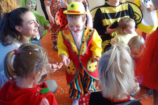 Am 17. Februar feierten alle Kinder der Krippe ihre große Faschingsparty. In lustigen Kostümen wurde zu fetziger Musik gespielt, getanzt und gelacht.
