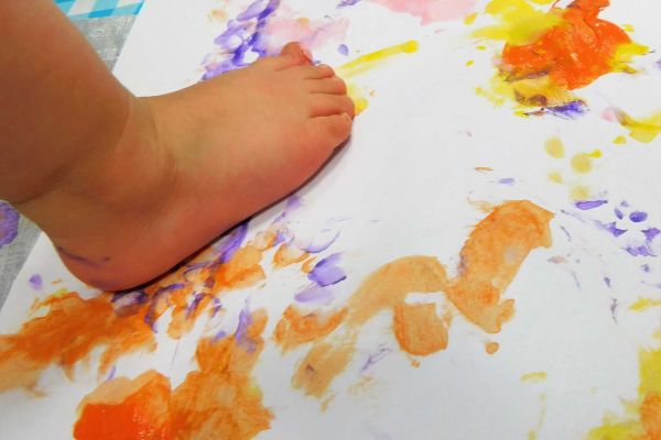 Die Marienkäfergruppe führte das Thema Fasching ganzheitlich ein. Die Kinder der Gruppe durften mit dem gesamten Körper ein kunterbuntes Werk kreieren. Kleidung aus – Farbe auf das w…