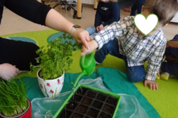 Passend zu unserem Thema Öko-Kids haben wir im März verschiedene Gemüsepflanzen und Frühlingsblumen mit den Kindern angepflanzt.