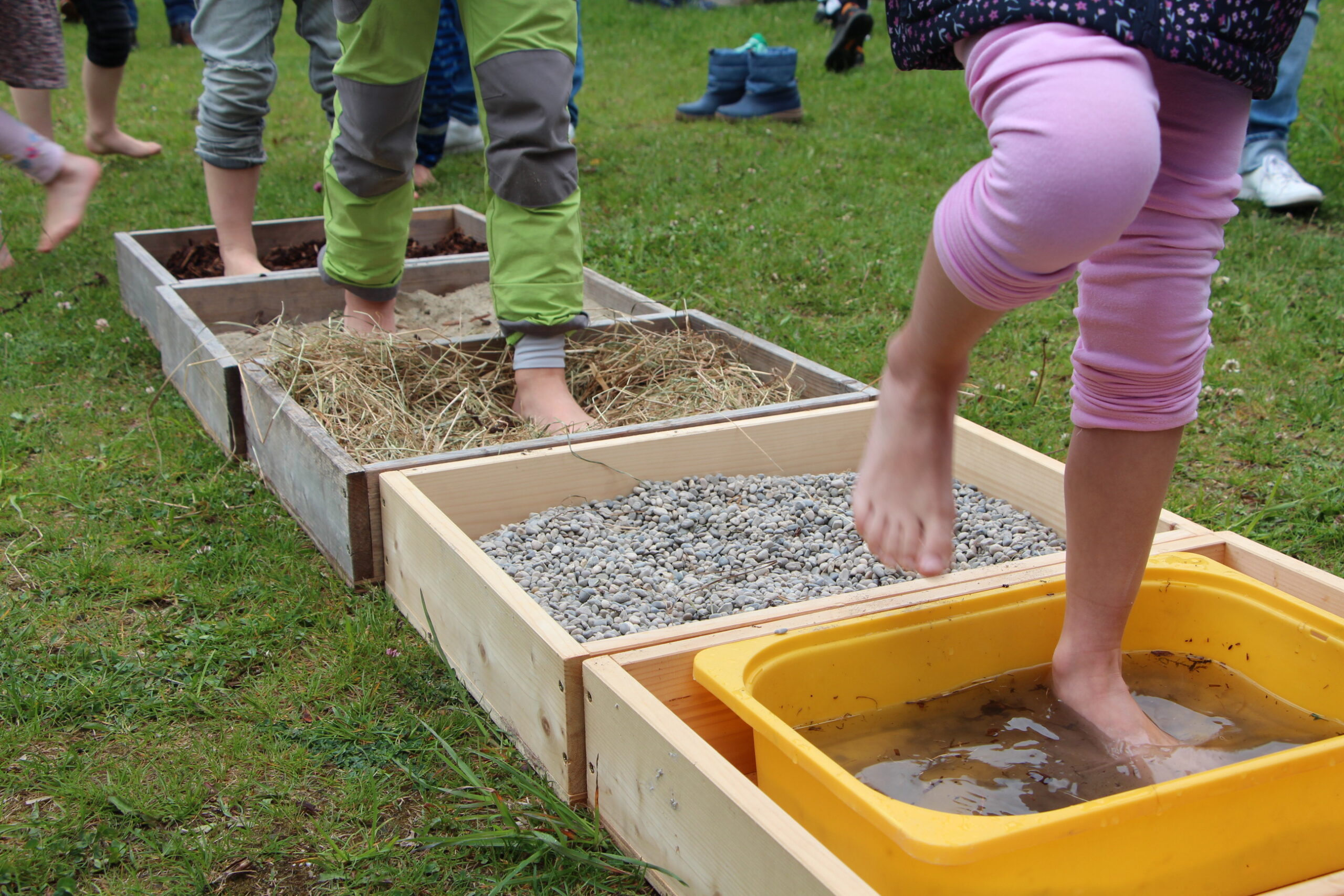 Der Wald ist der beste Spielplatz. Da muss man richtig aufpassen, um nichts zu verpassen. Und „Schwuppdiwupp“ findet dann ein Bienenkind einen kleinen Pilz mitten im Moos, den wir alle mit Begeisterung beobachten. Auch ein kleiner Laubfrosch hüpft plötzlich neben uns vorbei. Ihn hätten wir fast übersehen, da er sich am Waldboden gut tarnen kann. Mit großer Neugier verfolgen wir den Frosch auf den Weg nach einem sicheren Ort und bald ist er auch verschwunden.
